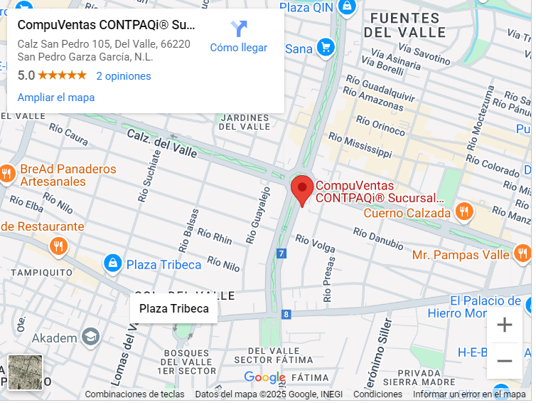 Facebook Youtube Twitter Instagram Linkedin WhatsApp SucursalesHermosillo, Sonora, MéxicoVisítanosGral. Bernardo Reyes No. 237 esquina con José Ma. Mendoza, Col. Balderrama, C.P. 83180.ContáctanosTeléfono: (662) 210 67 96 (Más de 10 líneas).Email: ventas@compuventas.com.mx Nogales, Sonora, México VisítanosAvenida Tiber #9 entre Circuito Terra y Avenida Mediterraneo Col. Mediterraneo C.P. 84062. ContáctanosTel. (631) 319 03 45Email: francisco-mendivil@compuventas.com.mx Obregón, Sonora, MéxicoVisítanosAve. Las Torres No.2131 entre Golfo de California y Golfo de Alaska Col. Prados de la Laguna C.P. 85157ContáctanosTel. (644) 412 17 79Email: roberto.portillo@compuventas.com.mx Navojoa, Sonora, México VisítanosC. Tulipanes, Fraccionamiento los Girasoles, 85874 Navojoa, Son.ContáctanosTel. (642) 422 99 89 y (642) 421 29 77Email: mariaelena.miranda@compuventas.com.mx CIUDAD DE MÉXICOVisítanosLeibnitz 117-Piso 3, Anzures, Miguel Hidalgo, 11590 Ciudad de México, CDMXContáctanosCel. 55 1304 4453Email: contpaqcdmx@compuventas.com.mx MONTERREY VisítanosCalz San Pedro 105, Del Valle, 66220 San Pedro Garza García, N.L.ContáctanosCel. 81 1994 2265Email: contpaqmty@compuventas.com.mx